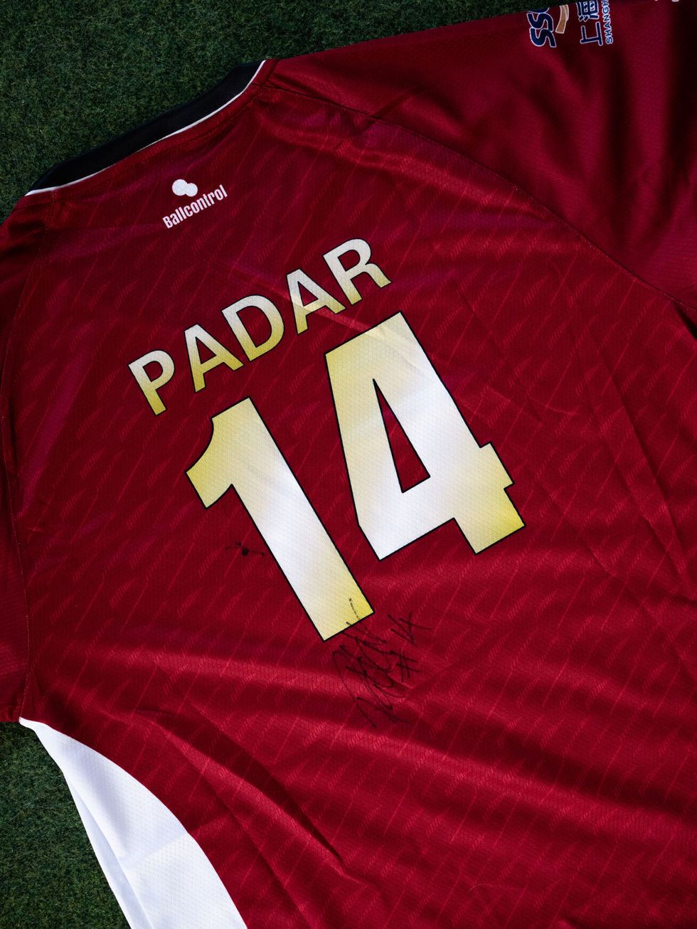 A collection of custom Jersey designs featuring various logos, numbers, and symbols in red and blue colours. The designs include sports jerseys, patterned fabric, and Asian characters.